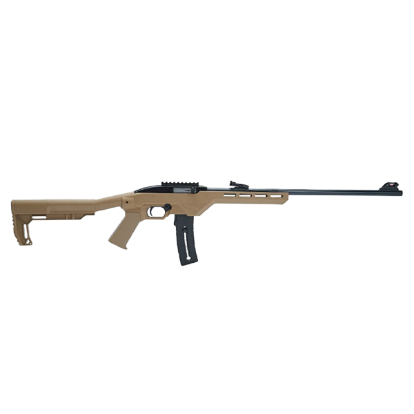 Com alta precisão, baixo estampido e recuo praticamente imperceptível, o Tactical é um rifle semiautomático, com alta velocidade de disparo. Possui coronha tática em polímero enriquecido com fibra de vidro na cor Tan, que garante grande leveza e resistência à arma, desenho do cabo do ferrolho 'mais robusto' para facilitar seu manejo. Conta ainda com 2 carregadores de 25 unidades.